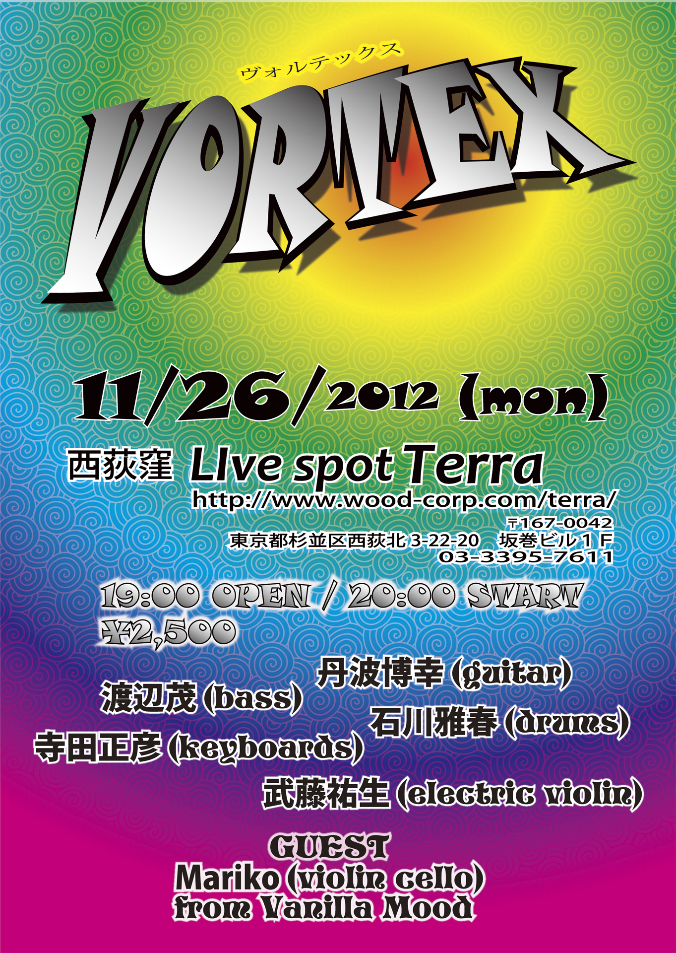 “n•Ó–Î (bass) Îì‰ët (drums) ’O”g”ŽK(gtr) Ž›“c³•F (keyboards) •“¡—S¶ (electric violin) ™šGUESTš™ Mariko (cello / from Vanilla mood) |